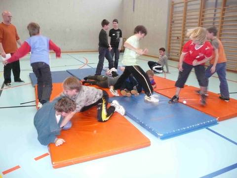 Den Jungs ab zehn Jahren sieht man die Begeisterung an. Mit vollem Engagement wiederholen sie Übungen, haben Ideen, wie man in einer Situation auch noch reagieren könnte, bilden neue Gruppen und schon geht es weiter.