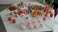 Zum Schluss werden noch eine Gummibärli-Bowle und ein Erdbeer-Milchshake kreiert. Dann wurde das gelungene Buffet von allen mit grossem Appetit genossen.