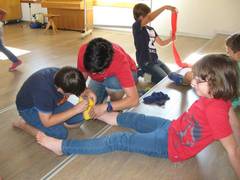 Zum ersten Mal unter der fachkundigen Leitung von 3 Kursleiterinnen der HELP Hallwilersee und einem Helpi. Dabei konnten die 23 aufmerksamen Schülerinnen und Schüler in 3 Gruppen anhand von Fallbeispielen verschiedene Übungen durchführen. So erfuhren sie Interessantes zu den unterschiedlichen Themen wie Seitenlagerung, Wunden desinfizieren und verbinden, Notfall-Telefonnummern kennen, Notruf üben und vieles mehr.