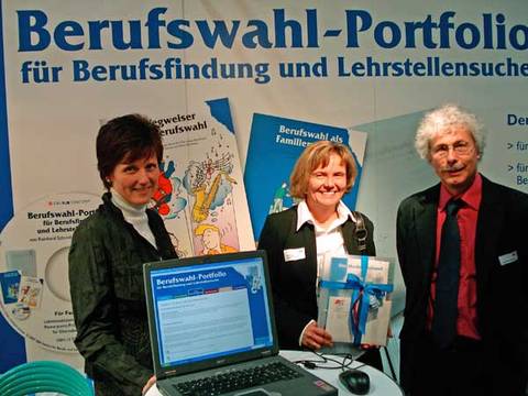 - An der Berufsmesse Zürich 2008 wurde das Berufswahl-Portfolio erstmals vorgestellt. Claire Barmettler und Reinhard Schmid übergaben Anita Bomatter, damals Präsidentin von Schule und Elternhaus Schweiz, ein druckfrisches Exemplar.